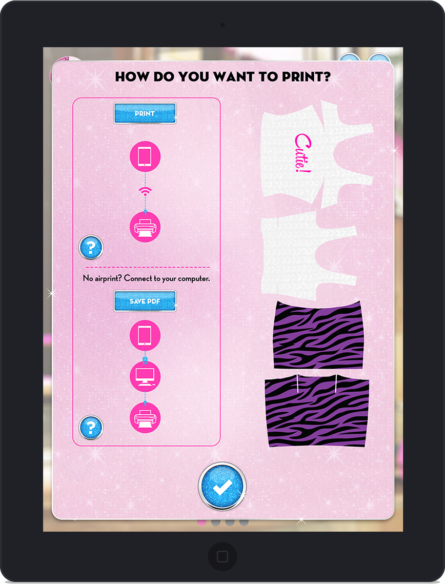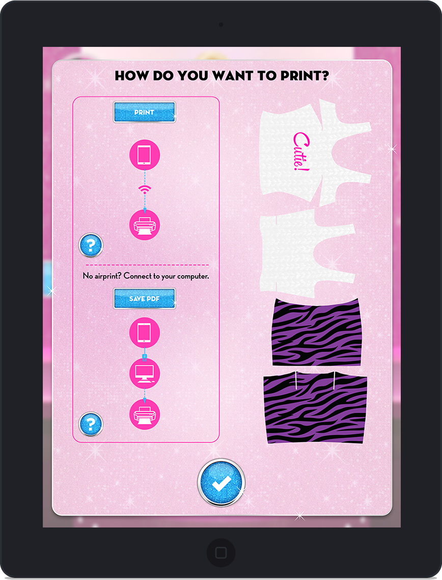 - Design easy-to-use app that allows kids to design outfits for Barbie and print their designs onto fabric paper
