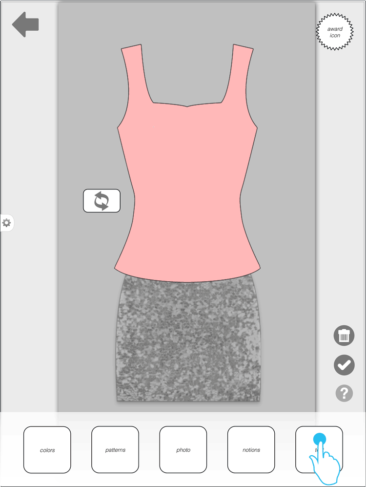 - Testers were inclined to scrap entire outfits when they were displeased with the direction that their design was going by creating a new outfit instead of "trashing" their current design. This subtlety prompted us to adust the symbol used to delete an outfit/start a new one from a trashcan icon to a "new dress" icon.