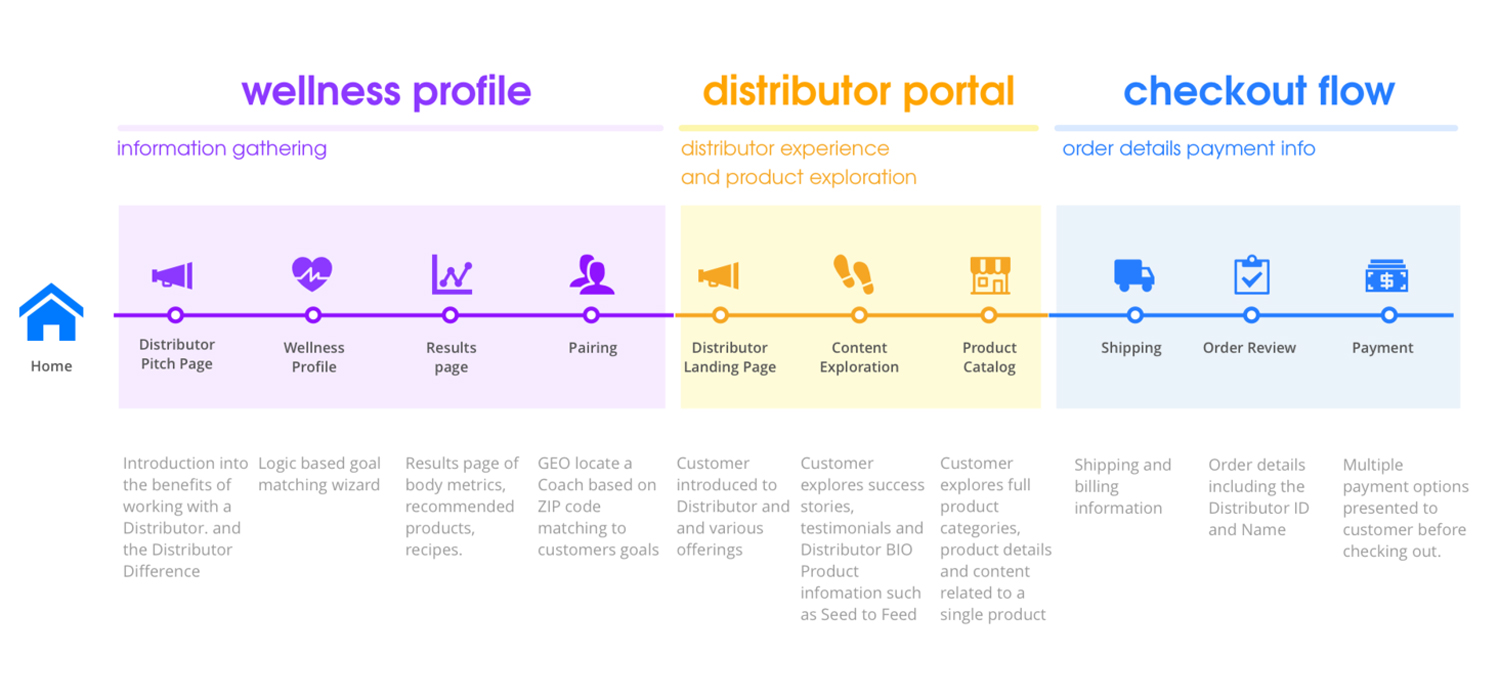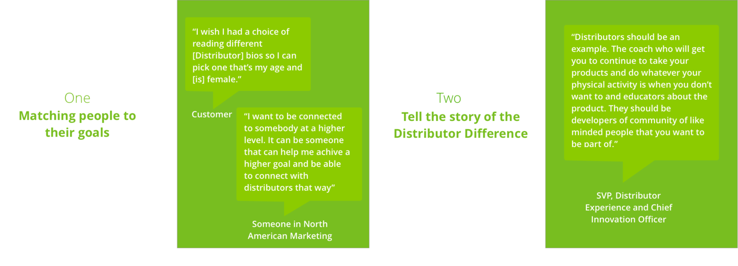 We first had immersed ourselves in the brand and business. We were looking to understand the existing research and overall landscape before gathering additional insights from business stakeholders and users. We focused on the holistic customer journey from brand awareness to becoming a distributor.