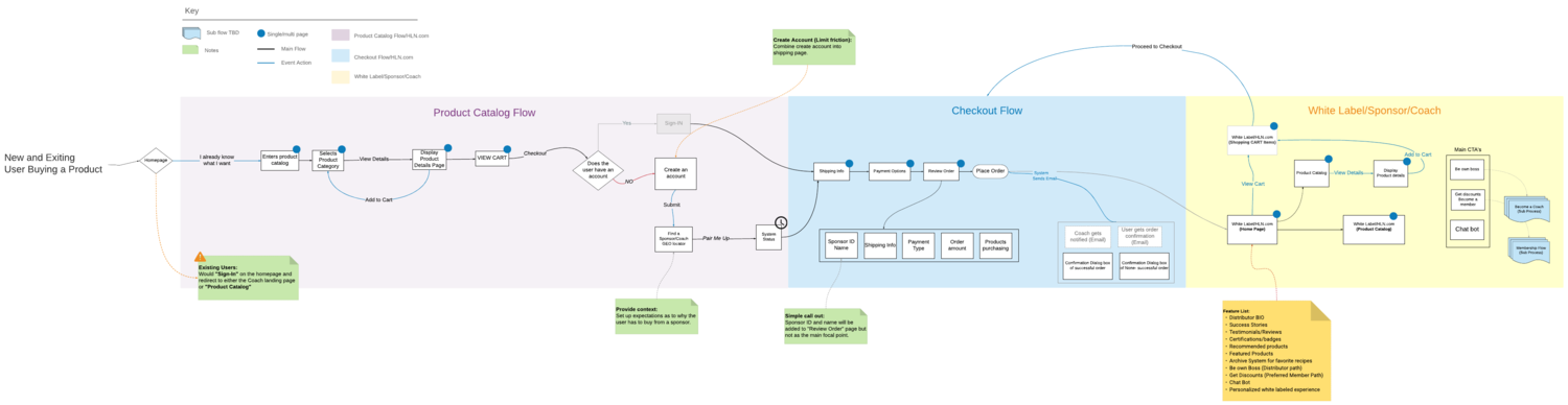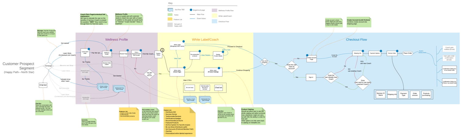 We then explored how the different solutions could work within the conext of Herbalife. The team and I began creating process flows that outlines our proposed solution.